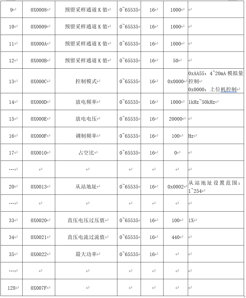 ??4-20mA對應(yīng)啟停和0~2700w放電功率, 5mA為放電啟停門限,即4-5mA電源關(guān)閉,5-20mA對應(yīng)0~2700W放電功率