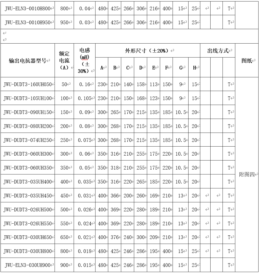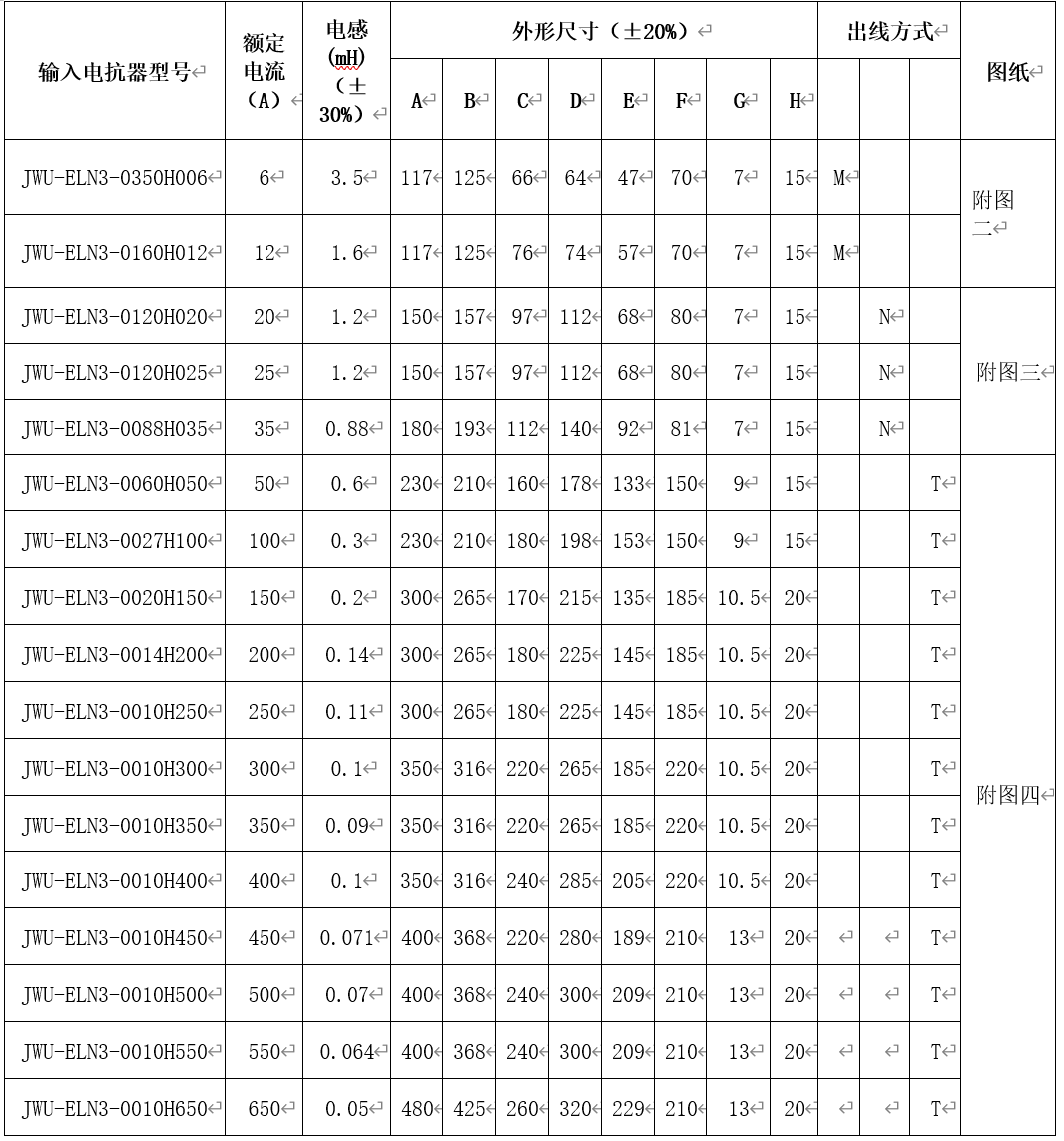 三、??? 三相交流電抗器技術規(guī)格及選型表