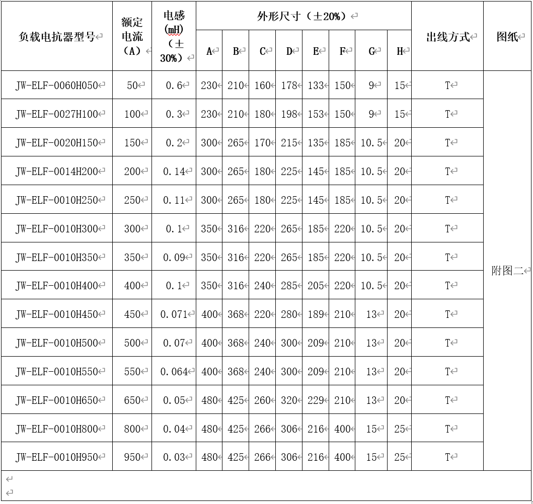 三、??? 負(fù)載電抗器技術(shù)規(guī)格及選型表
